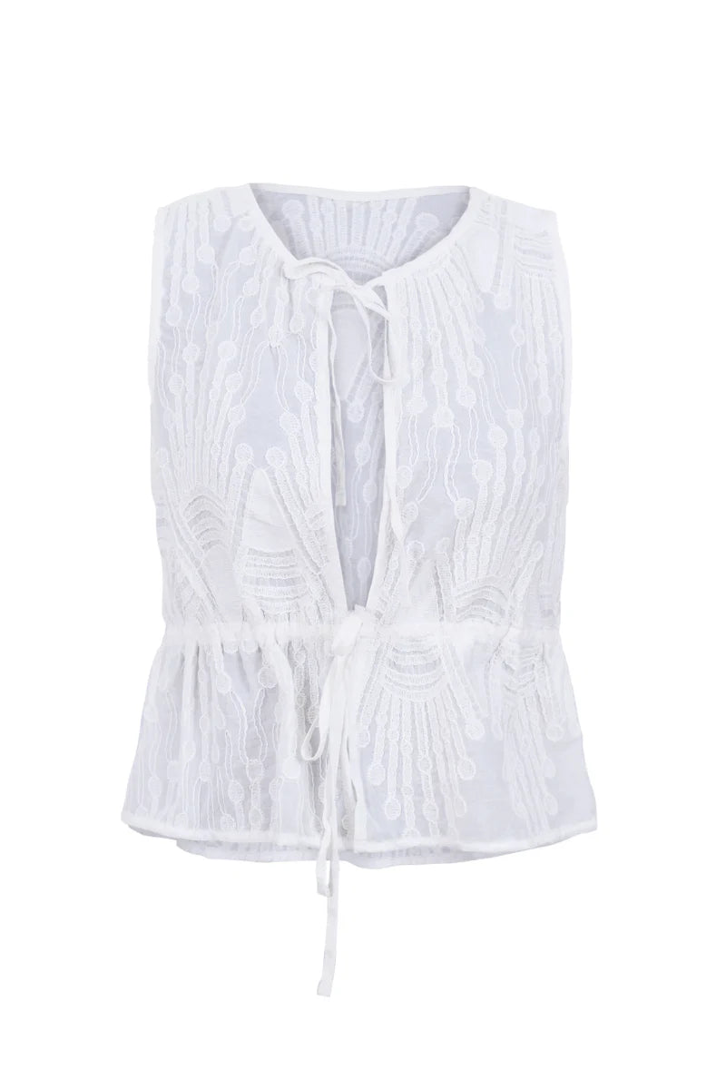 Avery blouse has a round neck and a drawstring bodice for a perfect fit. It features beautiful cotton embroidery. Made in Colombia.