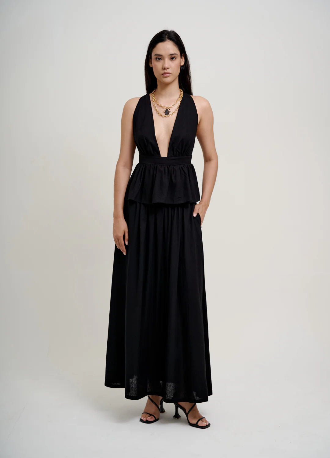 Deep neckline blouse, made of linen.