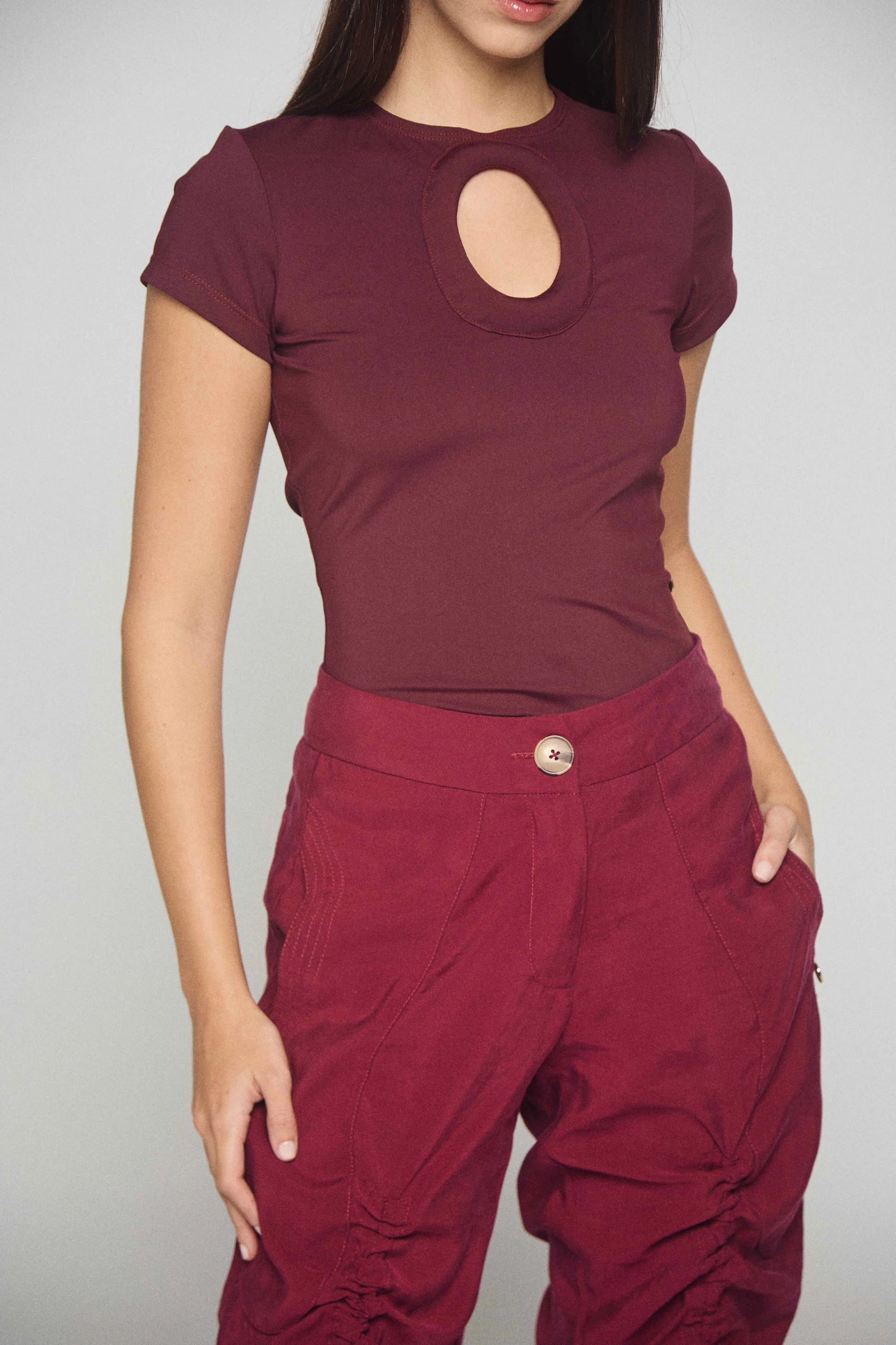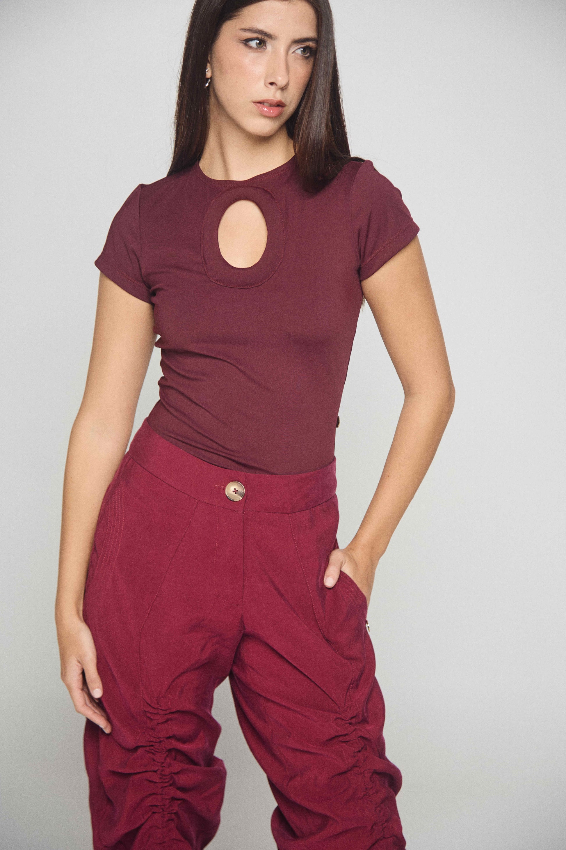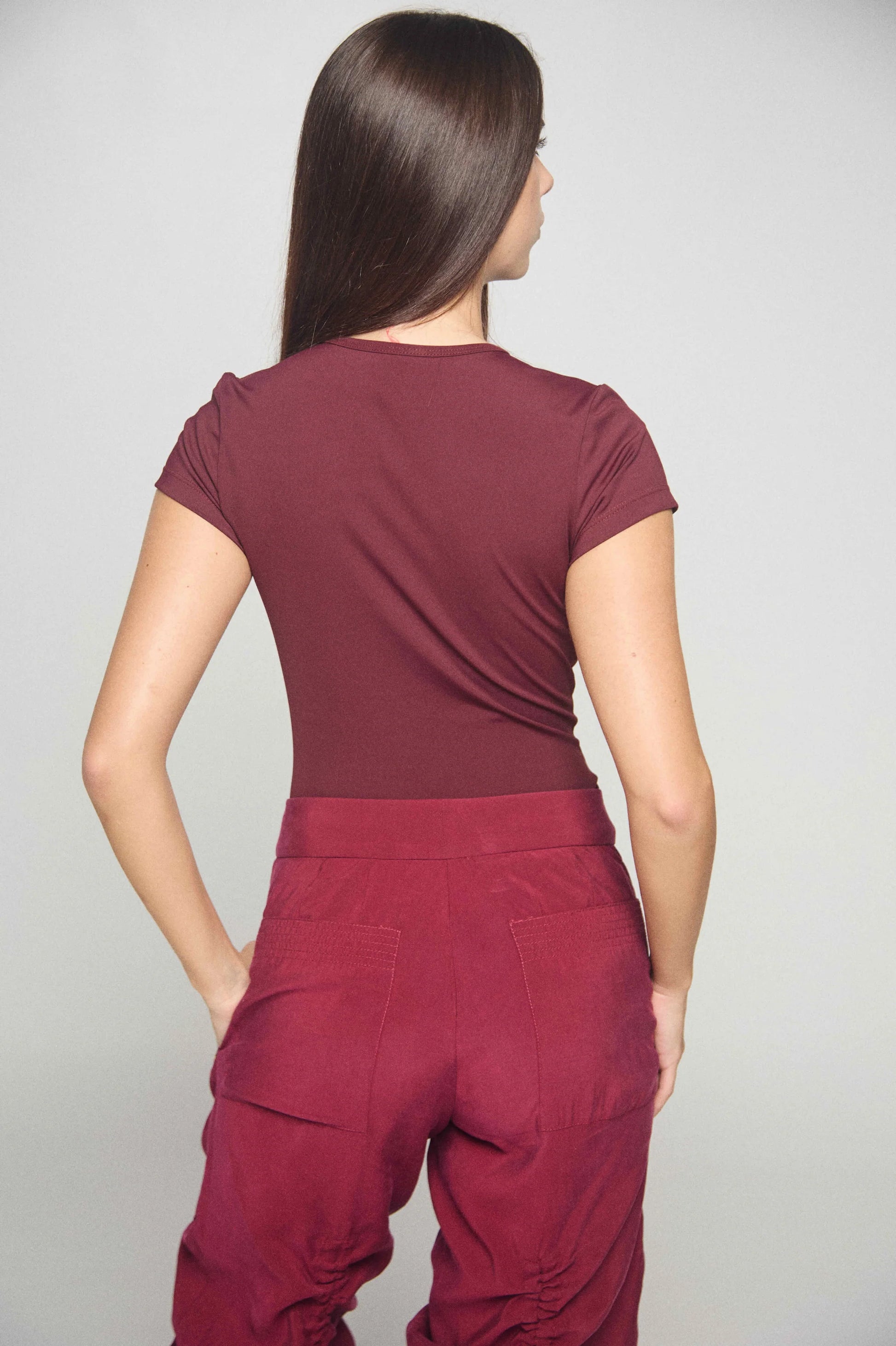 El top Nube Wine forma parte de nuestros nuevos tops básicos, no tan básicos. Confeccionado en un tejido suave y elástico , se adapta cómodamente al cuerpo y mantiene su forma perfecta durante todo el día. La manga corta lo hace más informal y versátil, ideal para climas cálidos o para usar debajo de chaquetas y blazers.